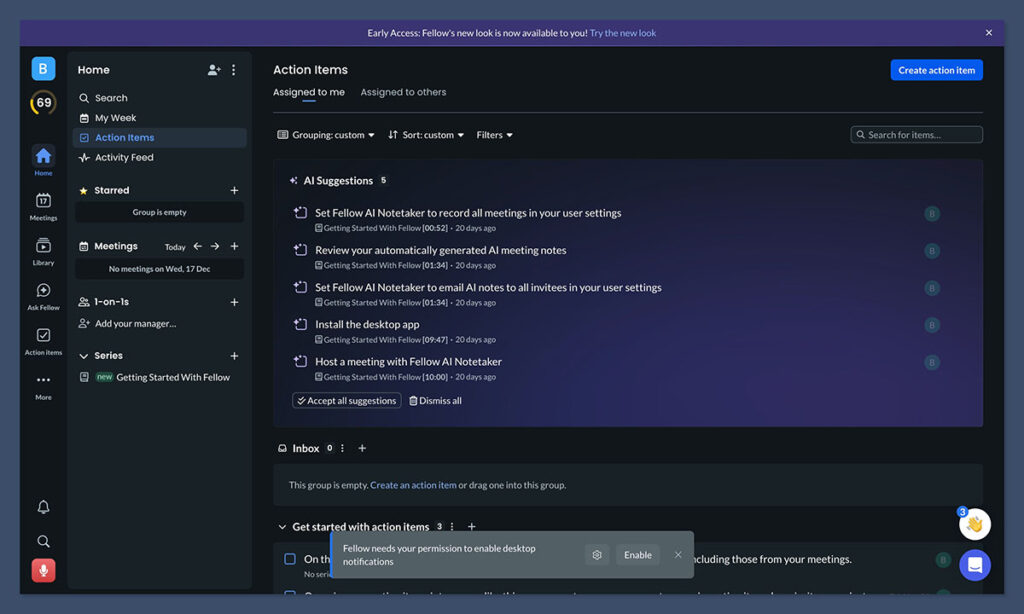 I will say, you need to orchestrate the “after meeting” features a little. If you don’t integrate it with your task tools, follow-ups won’t land as strongly. Plus, if only one or two people adopt Fellow, the meeting archive stays patchy.